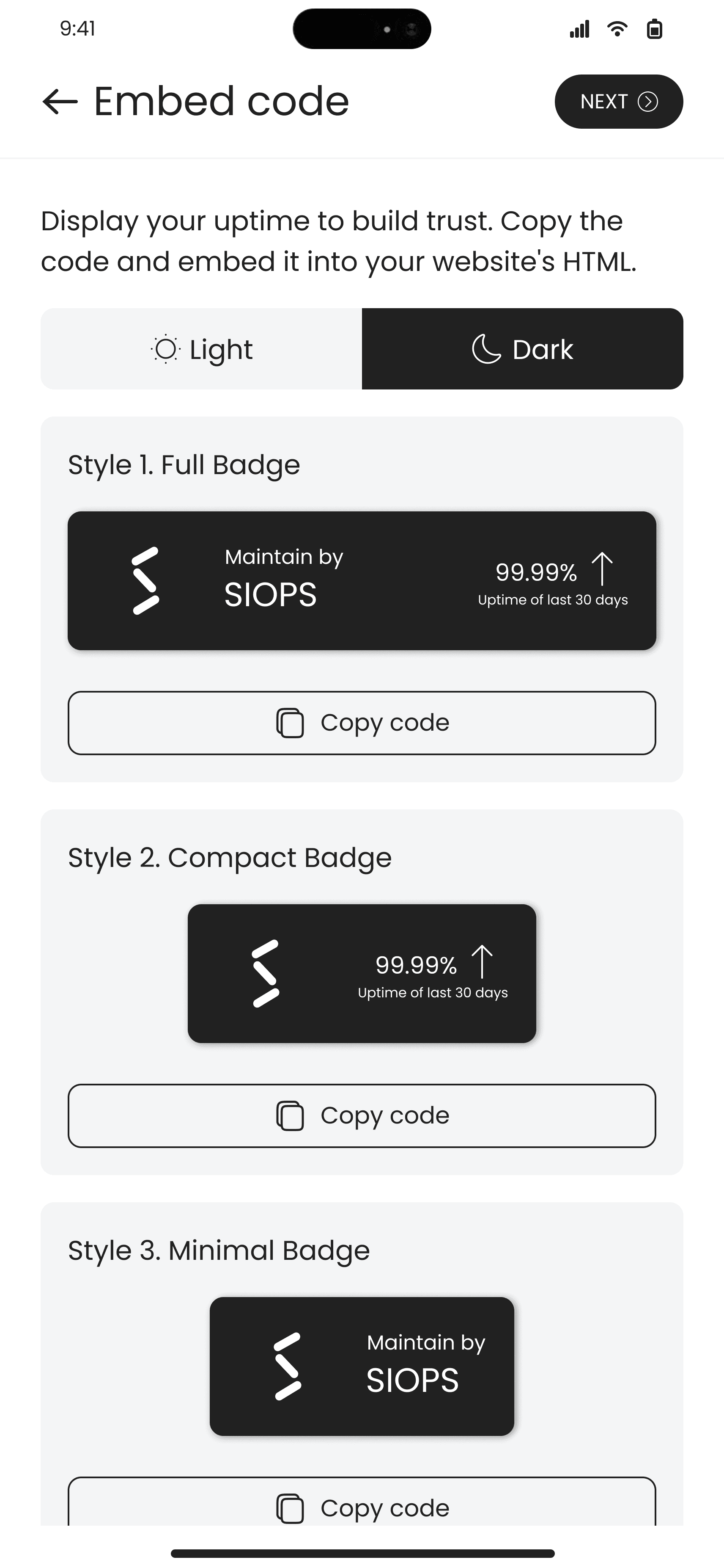 Build trust with your customers by sharing uptime and performance reports. Publish professional-looking reports that showcase your commitment to reliability.